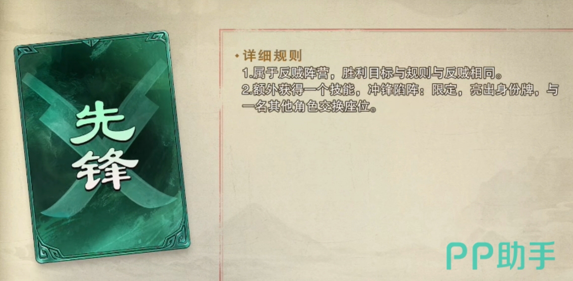 先锋:开局时身份会被隐藏,主动亮出时能与选定的角色互换位置。