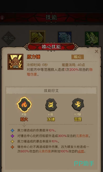 雷旋风技能的基础技能加点,必定要加点原力锤,原力锤的技能符文效果,在命中前方中等范围敌人时, 会造成一次基础攻击倍率为200%的物理伤害,并且在技能升级后,它还能不断的触发狱火、冰锤、雷霆技能,尤其是雷霆技能,可以对锤击中心位置,造成额外的伤害数值,该伤害的提升数值为10%,并且能够提升中心范围的元素伤害300%,可以说是游戏当中,最符合雷旋风技能的一个附属装配技能了。