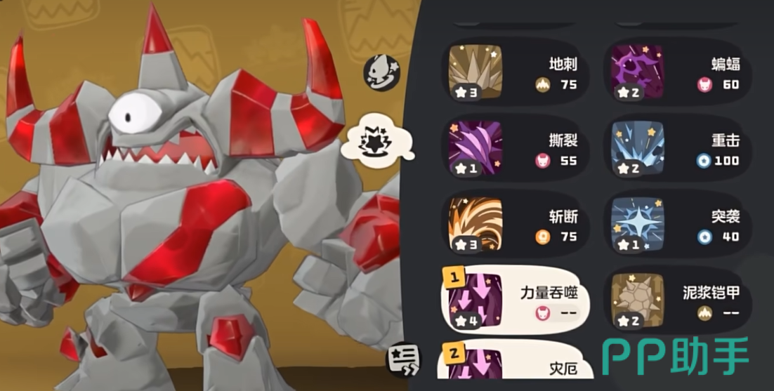 在PVE的战斗中,罗隐的高物攻让它能够轻松秒掉敌人,尤其是面对一些防御较低的精灵时,几乎可以一击致命。推荐技能搭配为泥浆铠甲、 跺地、蝙蝠和重击。这套技能可以让你在攻防之间游刃有余。