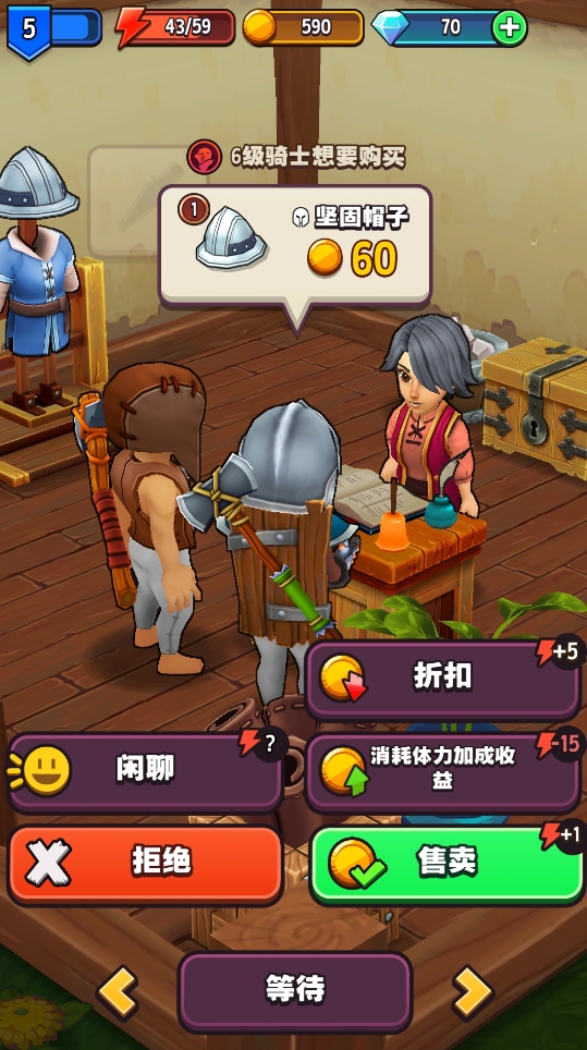 此外,在进行经营时,各位还能通过耗费体力来提高装备的售价,让同一件商品赚更多的钱,但该方法最好只用在品质好的装备上,以实现收益最大化。体力不足时,也可给客人折扣来恢复,但要切记折扣只用在白板装备上,避免自己亏太多钱。