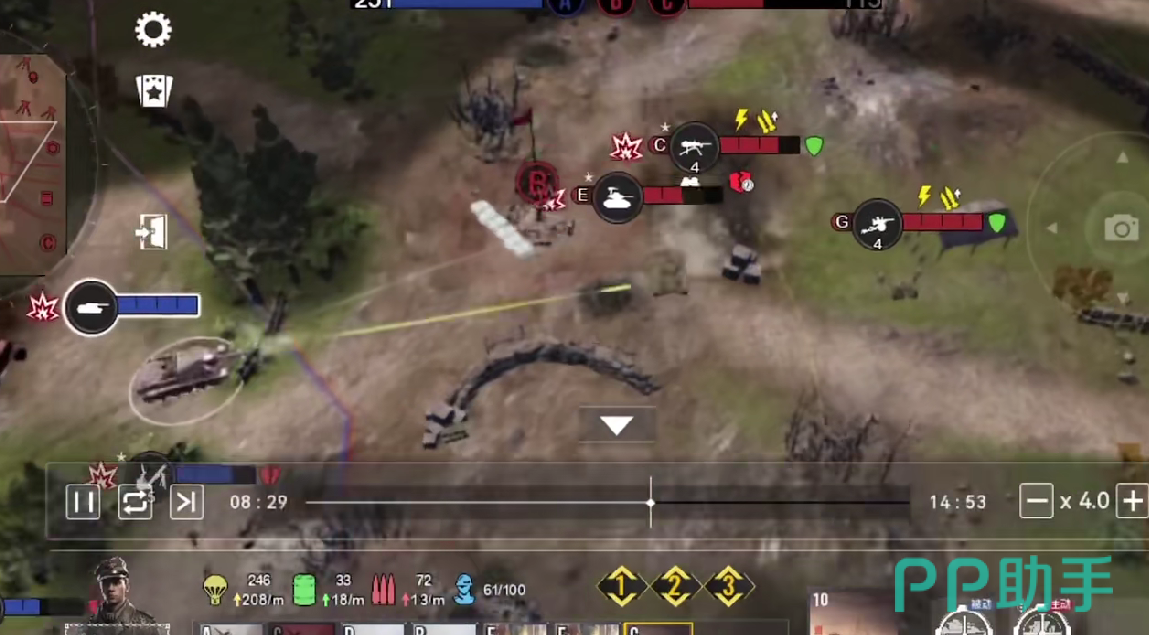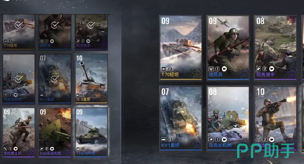 若玩家使用的是苏军,则必须要保证步兵的规模,不断地扩大步兵和近卫军团的人数,并且利用低成本的方式,消耗敌方的弹药水平,最终制作出重型坦克,直接碾压敌人。