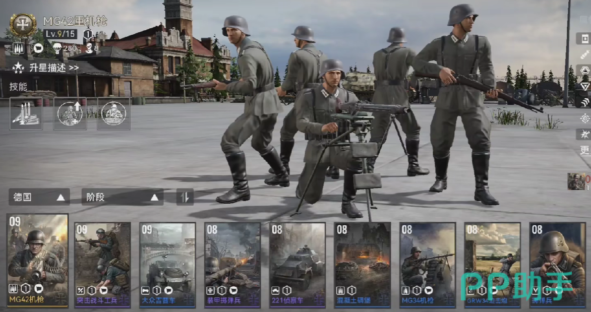 机械化步兵是整个卡组当中核心的输出角色,可以站点主力军团,战斗工兵可以拆卸掩体,并且能够升级火焰发射器,作为机械化步兵的后方部队,有着很强的压倒性,机枪队可以直接压倒敌方步兵,直接固守资源位点,在游戏当中也是需要进行升级的。