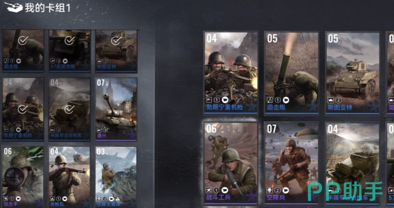 如果玩家选择的是美军,在游戏内,必须率先获取机械化步兵卡牌、美军伞卡牌、以及战斗工兵卡牌,这几个必带的卡牌单位。