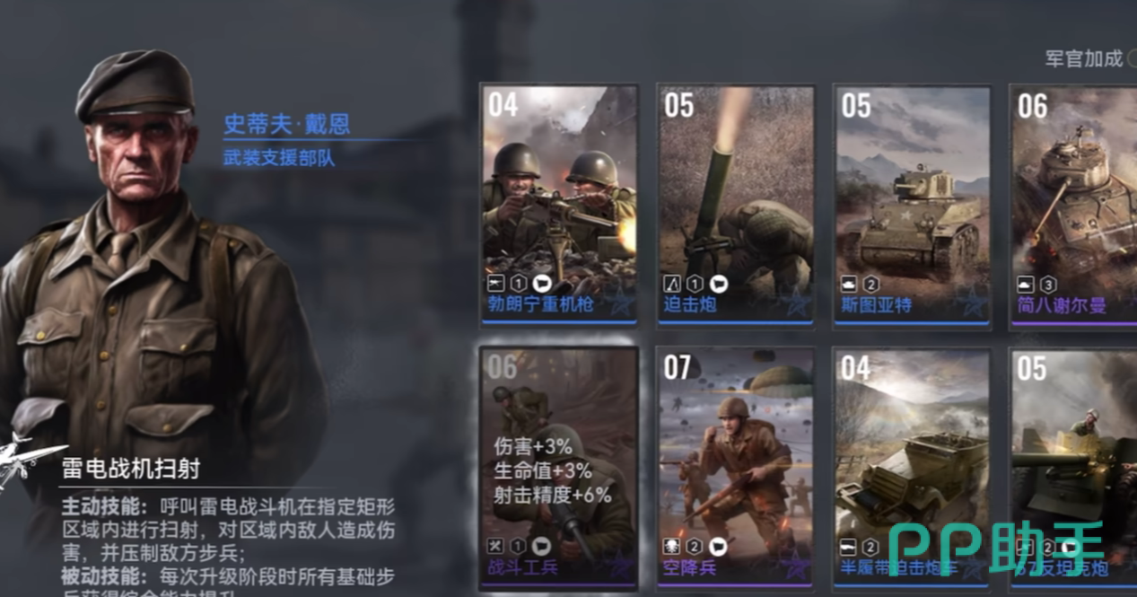 德军在游戏当中必须搭乘豹式坦克以及空军阵列,这两个军用设施,必要时可以搭配雷电战机扫射进行武装支援部队的搭建,迫击炮也是可以上阵的,德军在游戏当中,可以压制性的击溃美军部队。