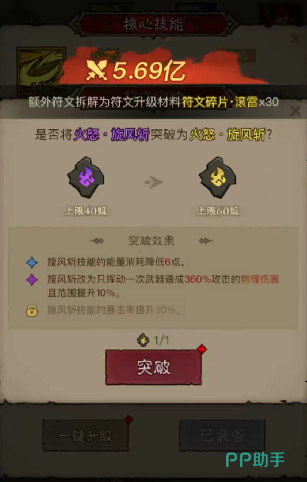 火锤需要玩家进化升级符文烈焰,最后才能够通过点触的方式,在战斗之中引发点燃效果,火锤的效果是,每秒钟可以造成对目标最大生命值百分之一点五的基础伤害,并且周期性的可以向前喷射出aoe的火属性攻击,该火属性伤害会连发dot的点燃效果,整体输出能力非常强。