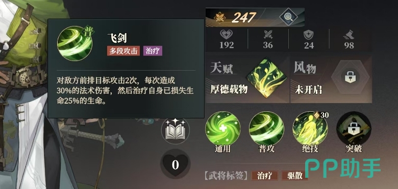 他的飞剑,不仅仅是一把利器,每次挥舞都能对敌方前排造成两次打击,每次30%的法术伤害,而随后治愈,则能瞬间恢复自身已失生命的25%,攻防一体的效果比很多角色的普攻都要强。
