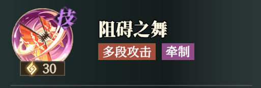 这一技能拥有对前排目标造成伤害的效果,伤害值为100%,这普攻技能没什么好说的就是模板化的技能,在看完后就要来看最后一个主动技能了,该技能拥有在对任一敌方目标进行两段攻击,然后使其击退减少行动条的效果。