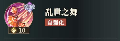 这技能拥有获得乱世之舞的效果,这buff拥有使用绝技的时候额外使目标眩晕1回合的效果,之后是她的第二个被动天赋被动,这技能拥有首次释放绝技的时候使己方全体获得1层神速让后在回合结束时自身获得一层舞动的效果,前一个效果为增加速度后一个为增加伤害,就技能来看,这是一个有自拐和全体拐类型的输出武将,在早期的时候这种武器还是很吃香的。