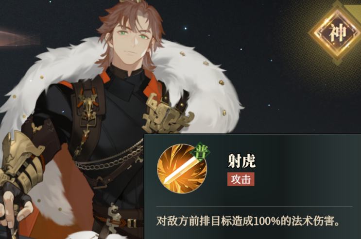 孙权的普攻为射虎,他可以对前排的敌人造成100%的法术伤害,比较中规中矩。大招是君临天下,它可以让友方的目标获取到吴王令,持续3个回合。吴王令的作用是提升10%的速度,并使得下一次绝招的战意消耗降低30点,只有一层,可以驱散。2级速度提升到11%,3级是12%。
