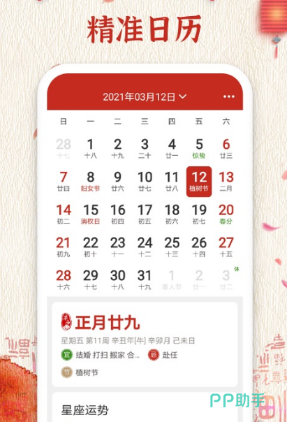 纯净无广告日历目前,传统的黄历有精准的农历与宜忌运势等等。如果大家想要详细了解当前的天气状况,那么这款应用也能够为大家全面推,精准天气可自由探索实时预报,让你提前做好相应的准备。对日历的整个主题与画面可以全方位自由调节,生成你的专属画面。