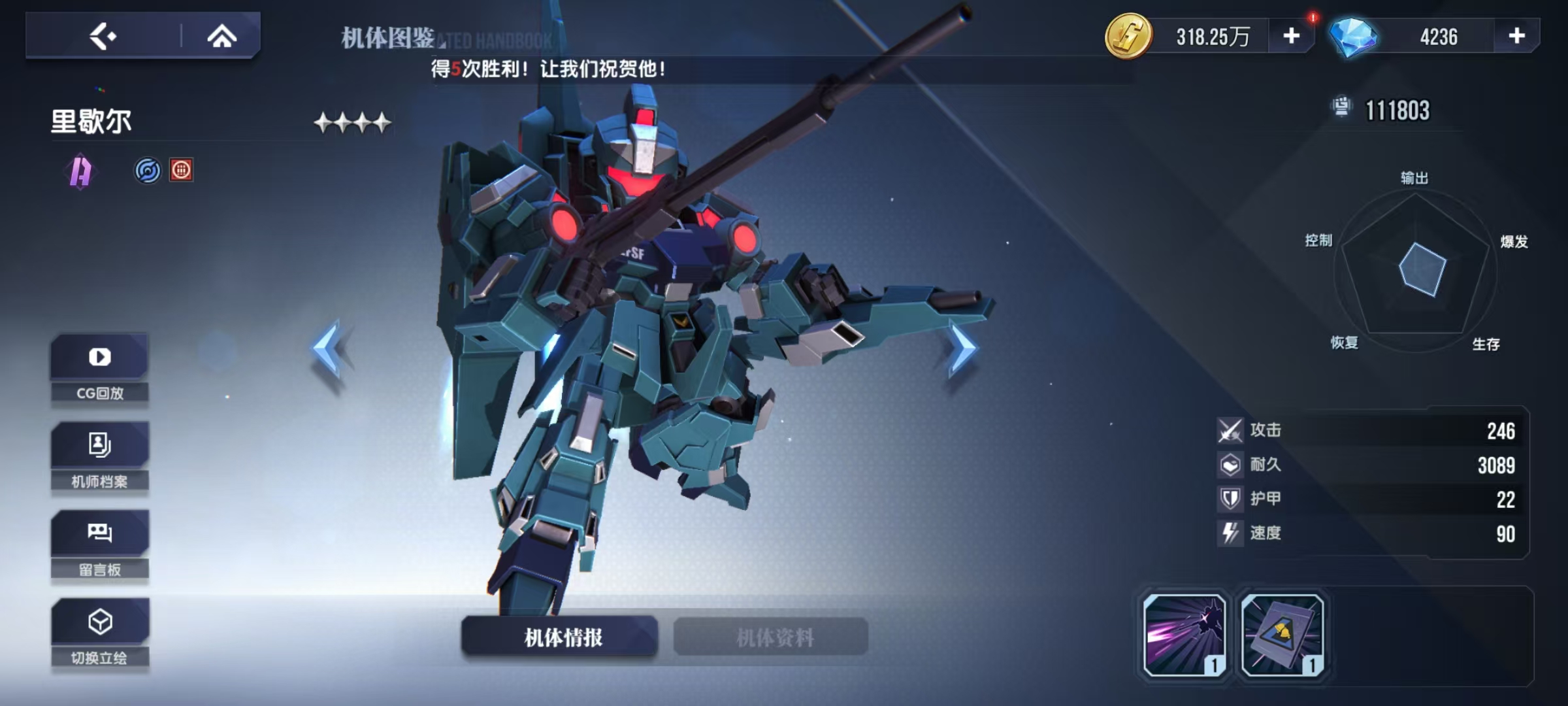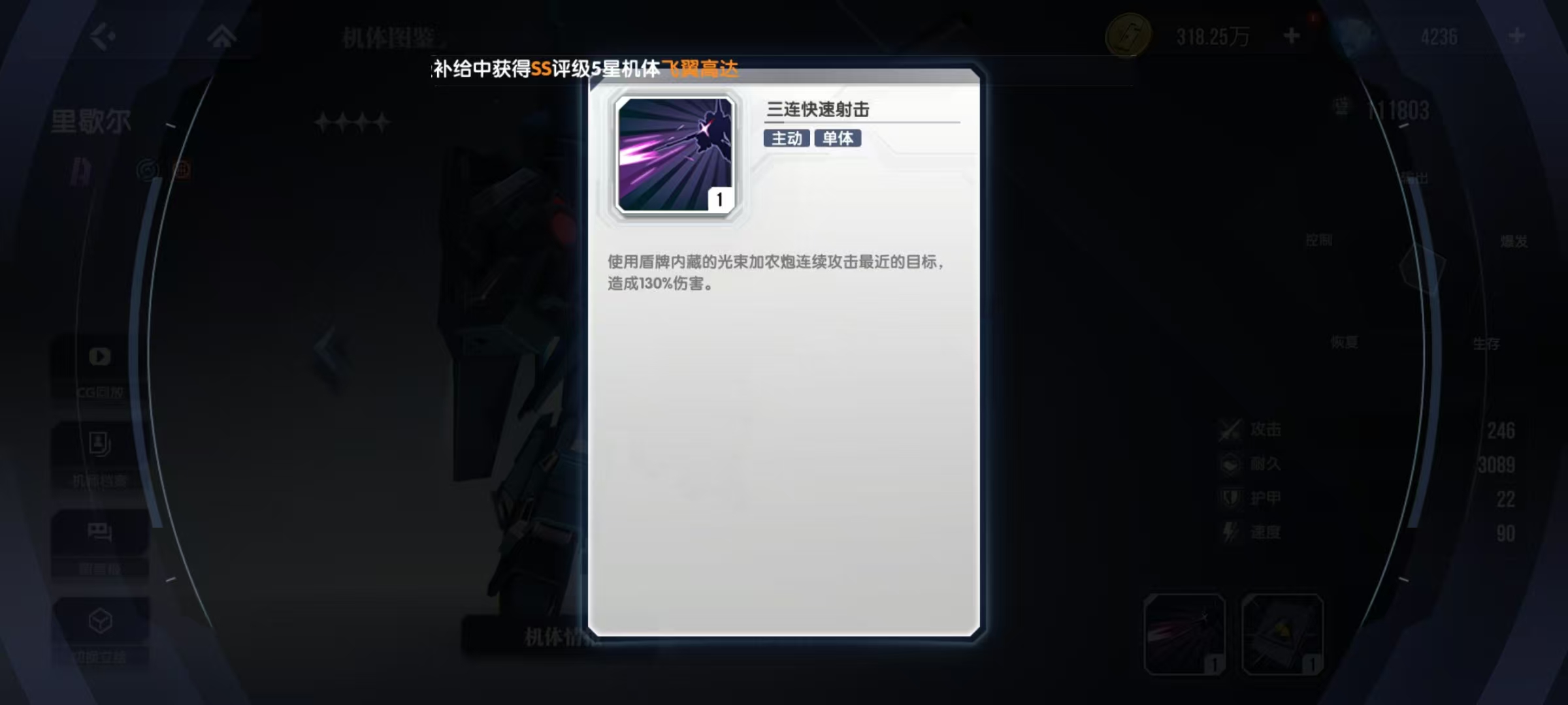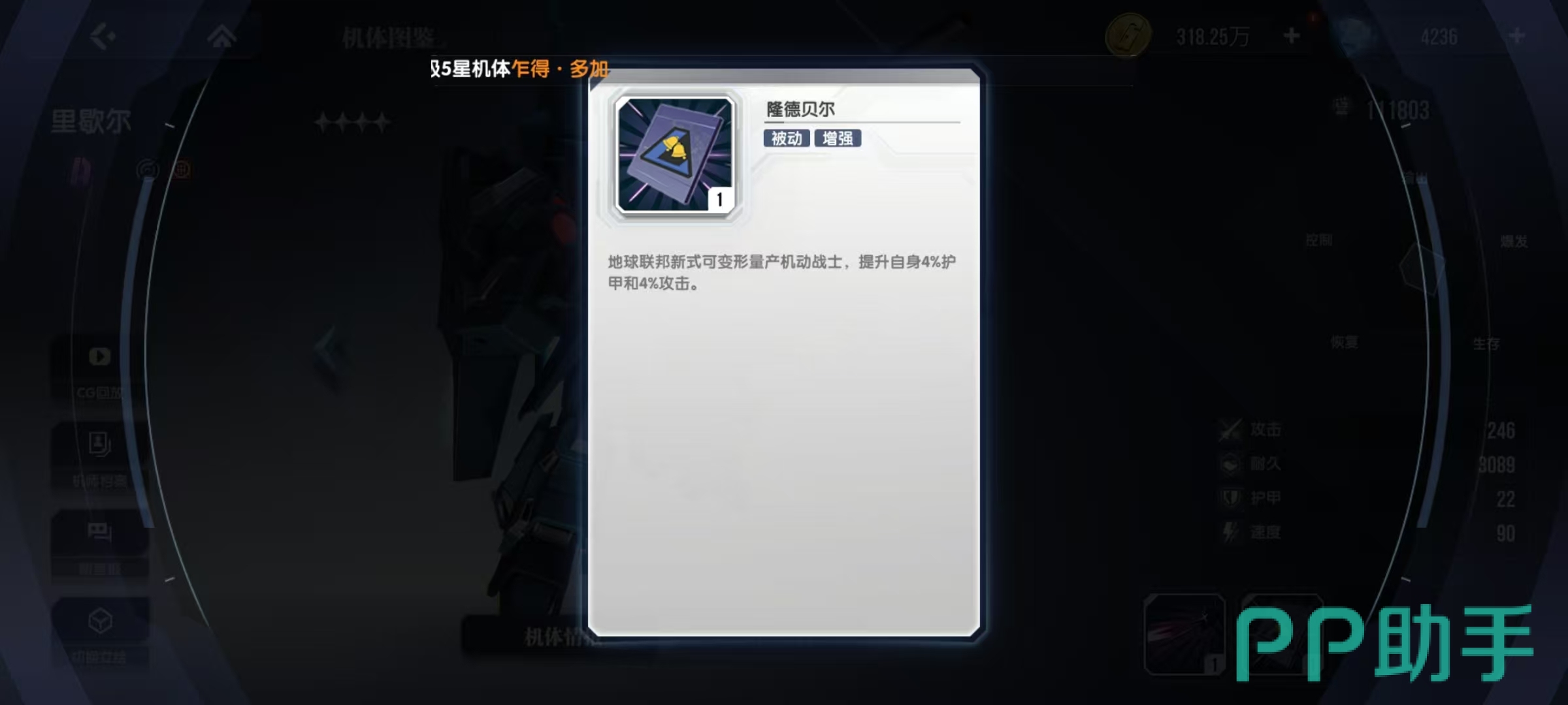 第2个是被动技能隆德贝尔,作为联邦新式可变形量产机动战士,能提升自身4%护甲和4%攻击。目前四星级机体的强度确实有些不够看,所以在前期还可以出场去暂时填补高品质机体的空缺,后续一旦有了更合适的随时就会更换下来了。