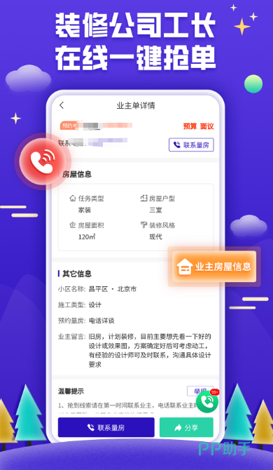 内容丰富的装修接单软件,其中有很多装修公司涵盖家装工装全屋定制等,可在这里寻找到不同的订单,百万优质装修客户实时推送。海量设计单可以随意接,直接面对业主,轻松解决装修渴望的问题。业主真实预约装修信息层层审核真实又可靠,两人面对面轻松谈不同的装修模式施工直达。