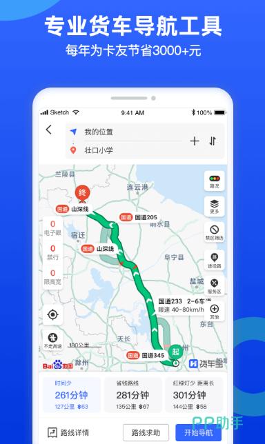 非常高效的货车应用app,如果想要找货或者想要使用导航就可下载这款应用主要的核心优势就是为大家提供非常专业的导航服务,为百万车友提供极高的效率,提供行车安全模式,通过智能算法推送出行车路线,自动避开限行限宽等路段,让司机行驶在合法又安全的道路上,根据自己的实际情况,推送出当前适合的路线,避免因为绕路而费油。