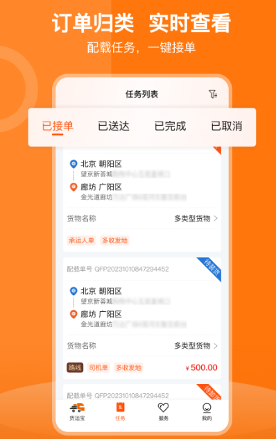 专为货运司机所推送的应用,拥有海量货源可以任意选择,比如空车配货等多种不同的模式。司机优先配对30秒就能够极速响应,5分钟内就,5分钟内就能够极速回应并及时到达。不仅为小伙伴们推送出发货找货的物流平台,更是相当出色的货运帮手,无论你想搬家还是拉货,又或者是运输物流都能够在这里满足个人需求。