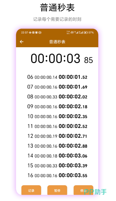 实用性极强的秒表软件有着相当强大的时间计算能力,也有全面智能提醒功能。足够简约的界面,支持倒计时等多种特色功能,帮你有效的遵守时间。不仅是记录生活的app,更是相当出色的辅助抢购神器,有相当出色的翻页时钟样式,全面的时间管理模式,比如倒计时闹钟专注训练等多种功能,是相当出色的学习辅助神器。
