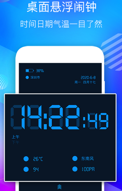 具有极高的科技感可直接显示当前时间不会错过任何重要时刻,也有整点报时或者半点报时功能,可结合自己的实际需求自由设定。帮助用户进行时间管理,可直接悬浮在不同的应用上,方便用户随时查看,避免错过重要的任务与信息。独具特色的个性化设置,在不退出当前应用的情况下随时观察时间。