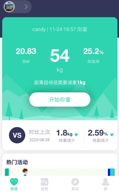 比较热门的智能健康监测专家,可连接不同的电子设备,比如常见的体脂秤,运动手环,小米手表等等,可快速监测你的身体健康状态,包括体脂率,体重脂肪率。根据所有数据相关显示,推送出非常专业的健身减肥建议。想要合理控制自己的体重,可按照其中的饮食计划去执行,还能在社区当中打卡分享你的减脂美食与运动心得。
