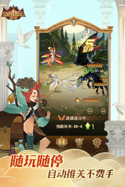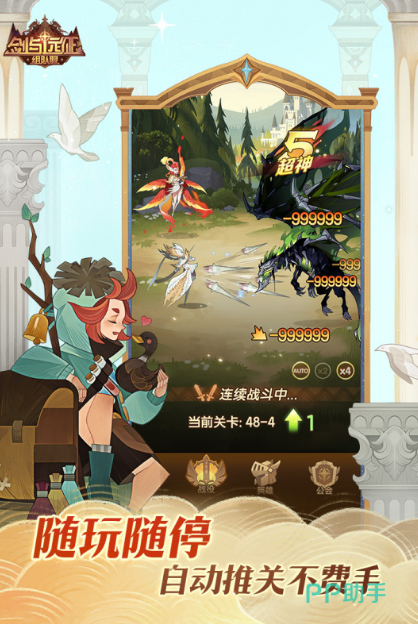 这款采用魔幻情节设计的放置手游,把玩家安排在一个奇幻大陆中,开启一段充满漂泊的传奇旅行。玩家能招募到的英雄,都是散发着魔法与神奇光辉的神话或者亡灵人物,并且可以通过战斗得来的资源进行英雄多样化养成。在游戏里的神话英雄克制属性设置十分关键,战斗玩法不难,难点在于对属性克制的灵活应用,也正因为此,才形成了玩家们最喜爱的平衡玩法。