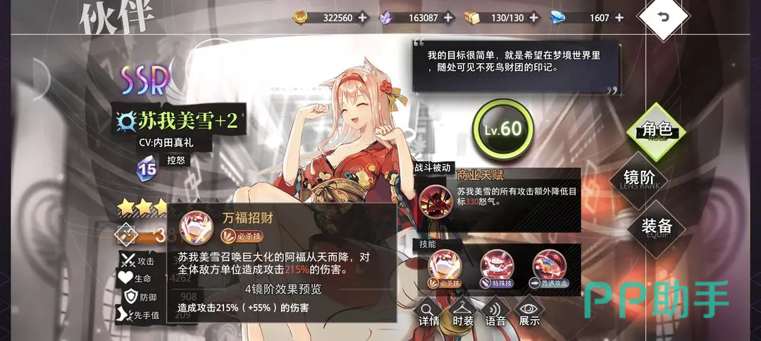 美雪之所以推荐,是因为她的被动的降怒气,而且添加全体范围伤害,毕竟开荒时期如果没有范围伤害,清理多个对手会很费劲,有她在应对大量小怪会比较轻松一些,能保护队友,增加输出的空间。
