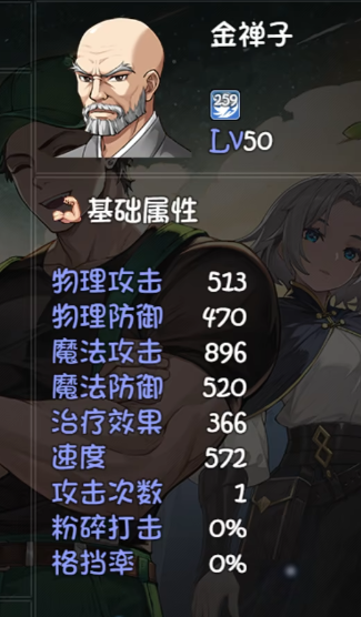 之后是第二位前期强势的角色金蝉子,这是一位兼具高输出能力和治疗能力的强力角色,输出方面他拥有稳定单体破10万伤害的输出技能,在前期点名能力可以说是一流点小怪可以说是一个技能就能杀一只,治疗方法他则拥有复活、群体治疗、增益等多个效果,这就让其可以为队伍保驾护航来提升队伍的生存容错了,可以说就从前期的治疗能力去看没有角色能比的过他,不过他的上限不高,不像曹操一样还有上升空间,此外他也没有增加掉宝率这种特性,他的特性也是比较一般的,因此到了后期后就需要给他换掉,这就是第二位前期比较强的角色了。