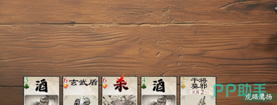 游戏里面咱们每一个玩家都可以获取数量不等的卡牌,这些卡牌有着不同的花色,功能也都不一样。一般行动卡牌分为杀,闪,桃,酒和易。杀代表的是攻击,如果成功的话将会对玩家造成1点伤害。如果花色是红桃的话则是会造成火属性的伤害。