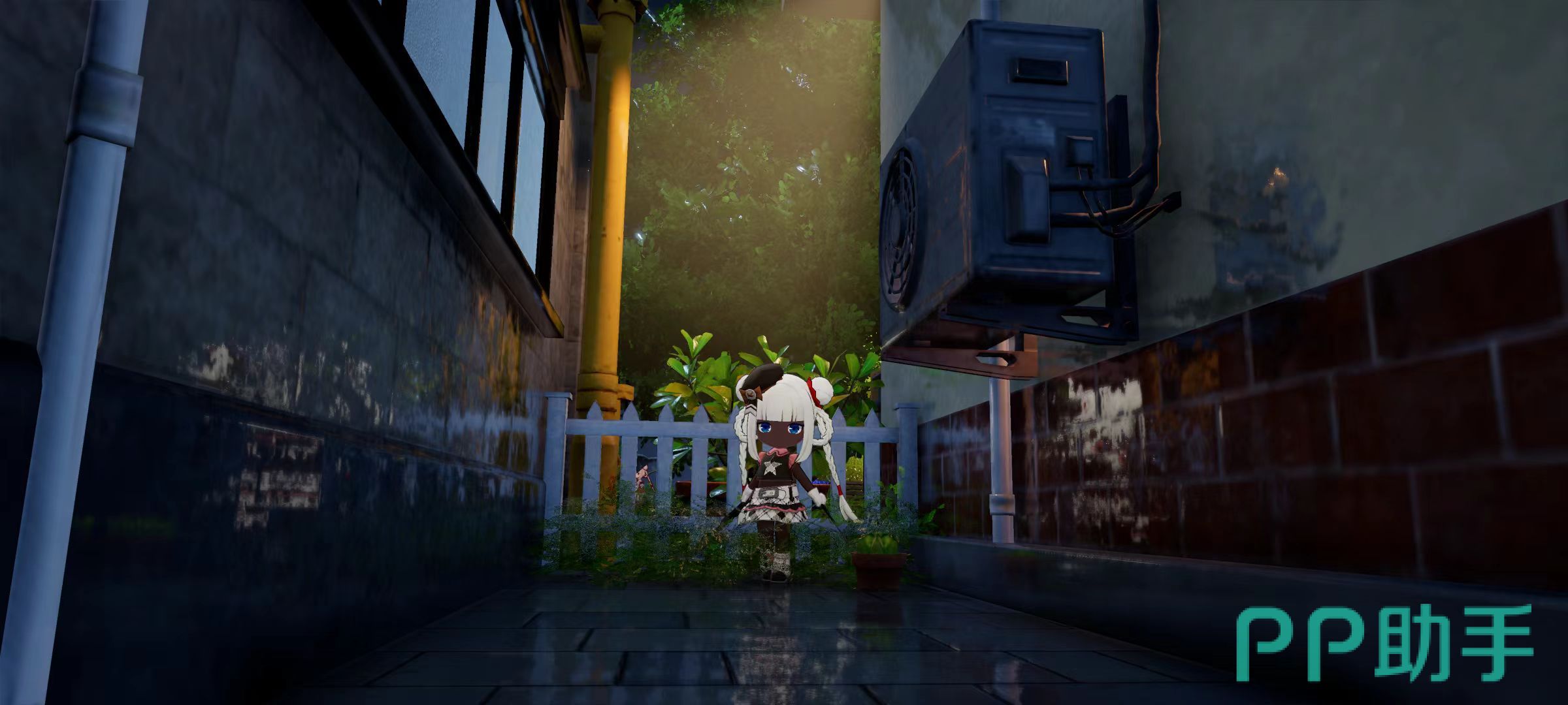 出来之后朝着服装店的方向走去,门前会有一个花类点位。随后走进一条小巷子里,进入小巷后,首先看到花盆上有一朵花,这里是花类采集点,当然品种是随机出现的。拿完之后继续向左边走,看到一个石块点位。在巷子里面出来之后,一直朝对面的饰品店走去,饰品店和杂货铺之间有一处木材点位。