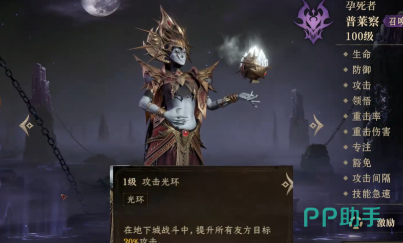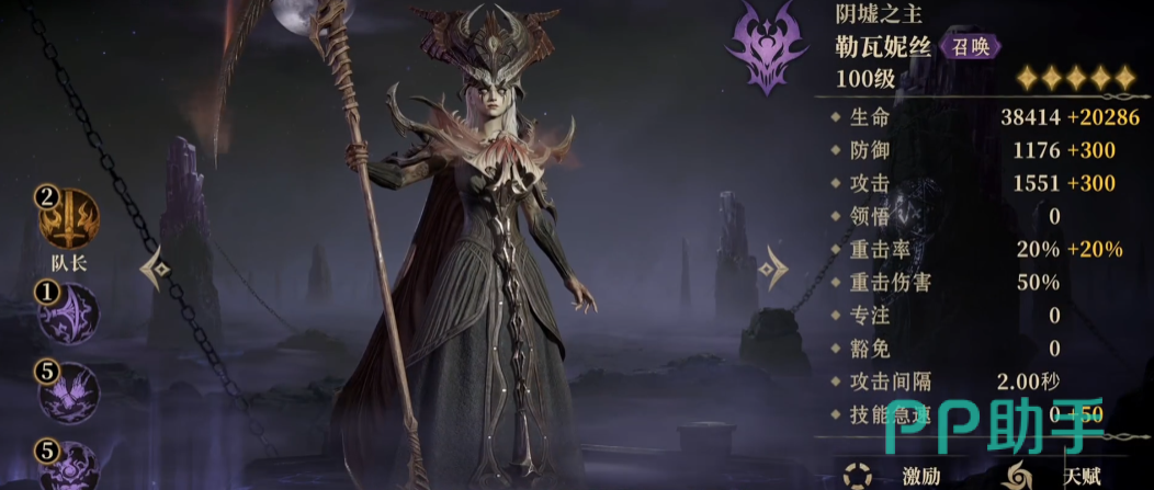 暗属性的阵容特点其实就是召唤魔物来协同战斗,很多暗属性的英雄技能效果都比较特殊。普莱察就是这个配置当中的召唤核心,传说品质的英雄,强度很在线,作为队长,刷地下城能提高对于45%的攻击力,他主要是通过战技,可召唤三道灵活进行攻击,随机会在攻击的地方有10秒的幽魂出现,结合被动,队友召唤不死召唤物时,会给周围的敌人造成派生伤害。