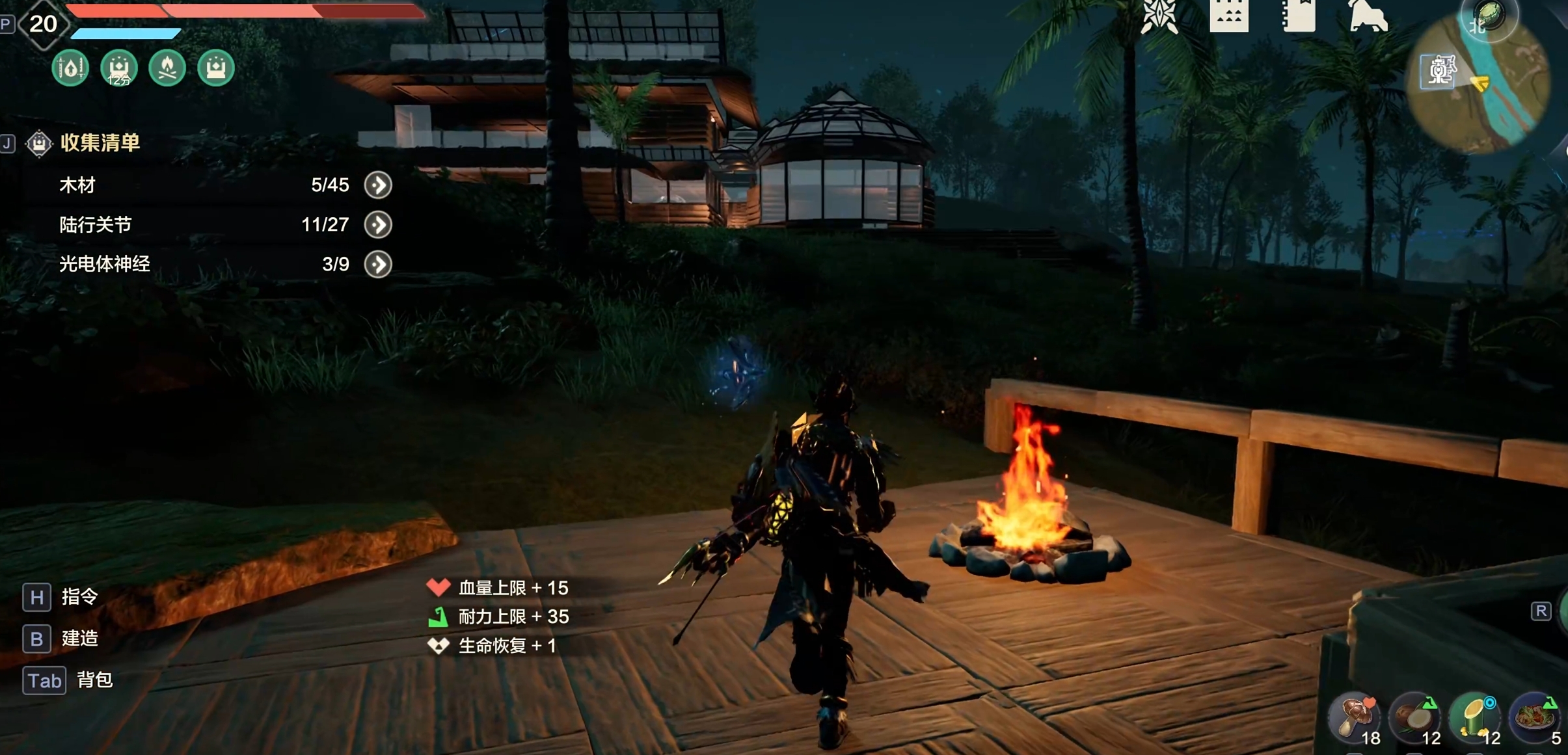 第三点就是角色在夜晚作战有减益buff叠加,施展动作需要的耐力消耗会增加同时攻击力也会降低。第四点可以制作火把来抵御这个buff,举起火把也还是可以战斗,不过要用单手武器。小编建议尽量避免夜间作战,最好是休息。