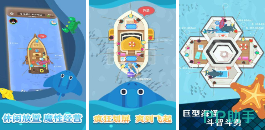 很多时候钓鱼都是为了让自己静下心来,当然也有很多人是为了展现自己的钓鱼技巧,一起来钓鱼就是一个体验起来非常畅爽的钓鱼游戏,玩家会拥有一个属于自己的渔船,可以招募员工在渔船周围,放置上大量的鱼竿,如果周围正好有鱼群,那么鱼肯定会上钩,玩家只需要在这个时候快速点击收杆即可,在里面经常还会遇到一些海怪,需要和员工联合起来,一起和海怪斗智斗勇。
