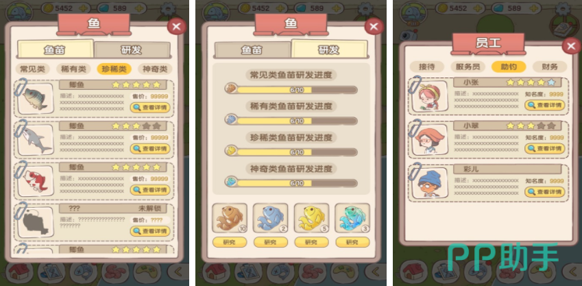 王多非常喜欢钓鱼,但因为专业能力比较弱,基本上很难钓到鱼,突然有一天王多继承了家族的鱼塘,为了发展家族企业,需要不断收集各类鱼苗在鱼塘里培育,并且把这里打造成一个休闲垂钓场地,吸引更多的人都来这里钓鱼,要想维持鱼塘的经营,就需要多去培育不同的鱼苗,这样才能用这些稀有的鱼类吸引这些垂钓者。