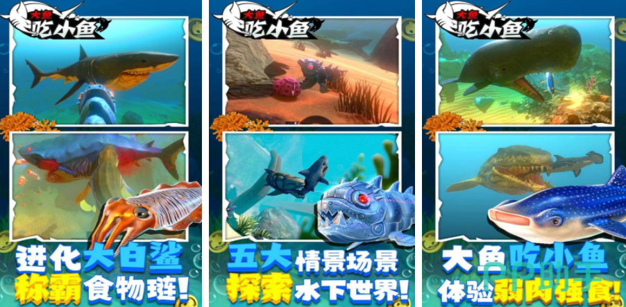 鱼吃小鱼是比较经典,并且设定很逼真的一个游戏,里面会打造一个真实的海底场景,各种不同的鱼类都会被还原其中,可以操控这些鱼在海底不断觅食,通过吃掉其他的鱼,让自身的体型得到成长,通过不断的努力,玩家可以进化成钢铁鱼,这样能在这个水下世界所向披靡,能随意选择喜欢的鱼类进食。