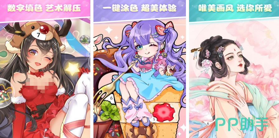 花花填色游戏中,每一个图案上有数字对应颜色的提示,游戏鼓励玩家发挥创意,自由选择颜色进行搭配,玩家可以遵循原本的数字颜色设定,完成一幅标准的填色作品,在古风人物图案中将角色的传统红色服饰,用粉色或紫色替代,展现出别样的风格,让每一幅作品都融入玩家的个性与创意。