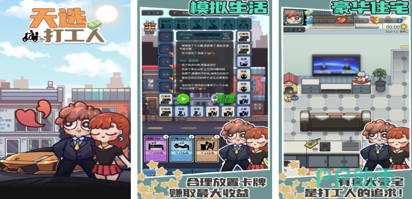在天选打工人游戏中,核心玩法围绕抽卡展开,通过抽取不同卡牌来决定每日的工作、休息和娱乐活动,卡牌分为工作、娱乐、休息三大类别,每张卡牌都具有独特效果,每天开始时玩家需将抽取的卡牌合理填入24个时间格子中,点击播放按钮后,角色便会按顺序执行卡牌效果,这种抽卡机制充满随机性,为玩家带来每天不一样的游戏体验。
