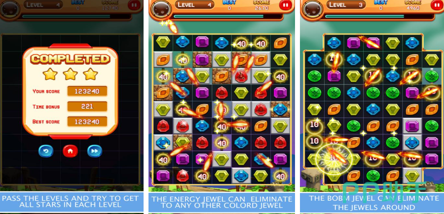 在梦幻宝石消除游戏采用清新可爱的画面风格,宝石造型精美,仿佛将玩家带入一个梦幻的宝石世界,从晶莹剔透的水晶、圆润的珍珠,到散发神秘光芒的魔法宝石,每一款都绘制得栩栩如生,让人看了就心生喜爱,搭配上欢快愉悦的背景音乐与清脆的消除音效,为玩家营造出轻松愉悦的游戏氛围。