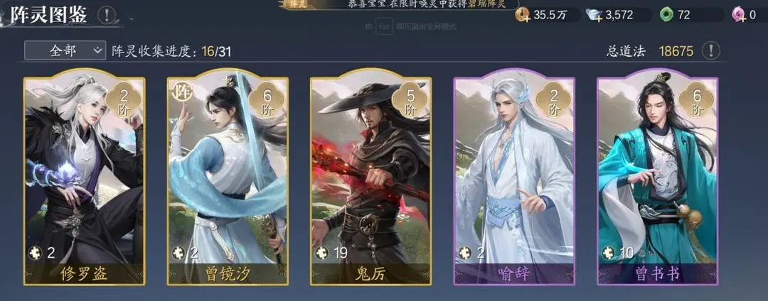 举例来说几个阵灵,首先是萧瑟,该阵灵能提高角色的灵力储备效果,利用该阵灵的特性就能有效提升角色的输出能力;搭配技能伤害高的角色能快速的击溃敌人。第二个九曲,他的能力是可以提高佩戴者的治疗能力,就非常适合辅助型,尤其是奶妈角色搭配使用,能有效提高奶妈的治疗能力。