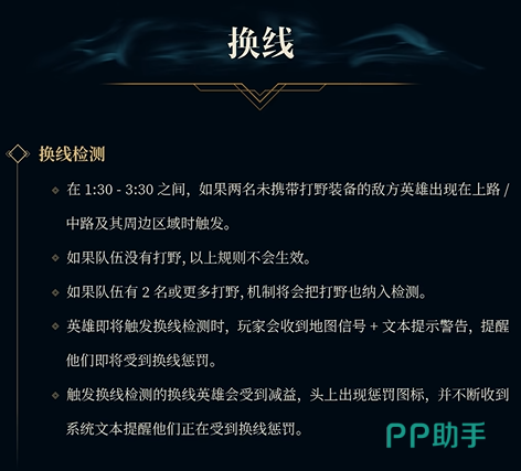 除了英雄调整外,本次PBE美测服还推出了一项全新的换线检测机制,这可是要颠覆传统游戏套路的一大创新!从现在开始,在特定时间段内,如果敌方没有打野而又频繁出现在上路或中路,系统会对换线玩家进行“惩罚”。这种机制会让防守方塔的伤害大幅提升,且给敌方小兵的金币和经验进行削减。通过这种方式,开发者显然是想让换线战术变得更加有风险,你敢冒险吗?