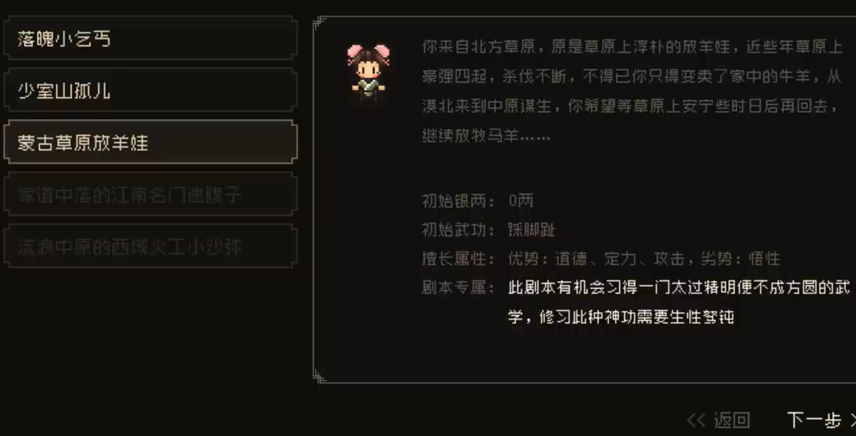 玩家在卖货女获取线索,然后去曲家村获取叫花鸡存入仓库,从破败的酒楼获取杜康酒,然后从随机机缘获得南樵刀法,增加自己的单体攻击,发挥自己更大的实力。