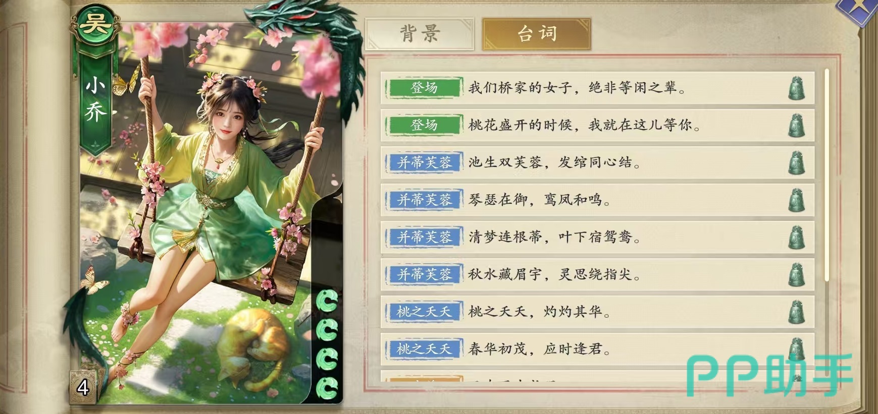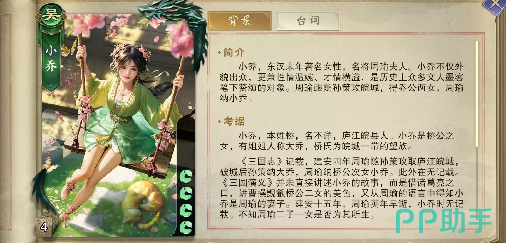 在代号杀这款游戏的吴国阵营中,大乔和小乔都是大家非常喜欢使用的武将牌,尤其是小乔技能非常有趣,今天小编就来介绍一下代号杀小乔怎么玩。相比于其他机制比较复杂的角色,小乔的技能描述非常简单,但是也需要仔细进行深入分析,这样才可以将技能的效果真正发挥出来。