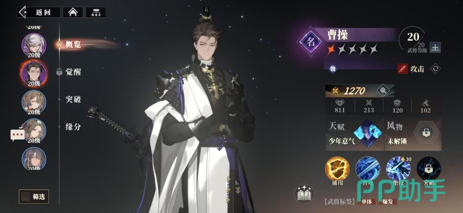 曹操则是一位输出能力可观的武将,他的输出倍率令人印象深刻,完全可以担任主C的位置,随着星级的提升,他的输出能力变得更加优秀和稳定,用处还是很多的,且也是一个品质上乘的攻击角色。