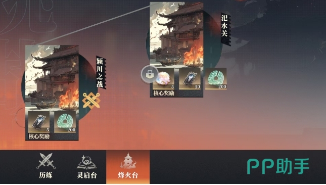 另一个重要的试炼板块就是烽火台,从某种意义上来说,它可以被理解为一种爬塔模式的玩法,烽火台的关卡从颍川之战开始,一直到青州黄巾战,难度会逐步递增,在这个过程中玩家将面临各种不同的挑战和考验,完成烽火台试炼的主要奖励包括常驻抽、三山壁以及各种对武将养成起着关键作用的材料。通常情况下,每一大关的关底难度相对较高,需要玩家充分发挥自己的策略和技巧才能顺利通过,尤其值得一提的是,如果玩家能够成功通关100层,还将获取实力强劲的神将貂蝉,这也为大家抽卡节省了一定的资源。