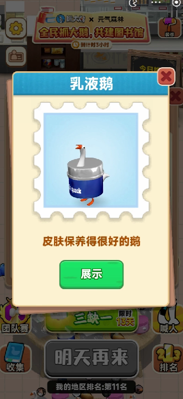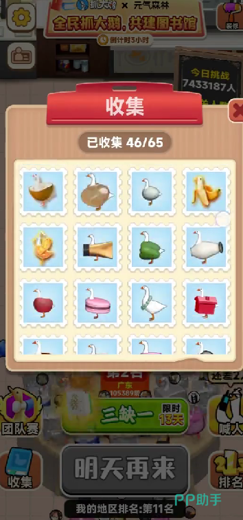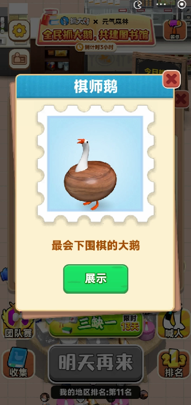 三缺一在游戏当中代表的是两种收集元素,一个是基础大鹅的类型收集元素,它要求玩家收集普通大鹅、合成大鹅、稀有大鹅,这3种不同类型的大鹅。
