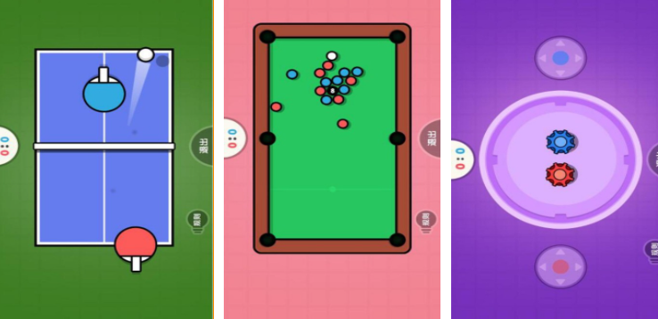 《双人联机》中饱含了非常多的同屏双人小游戏,两个玩家可以在一部手机上一起玩游戏,其中的小游戏十分丰富且玩法简单、有趣,游戏的各种有趣设计给玩家们带来了无限的对战比赛的乐趣。
