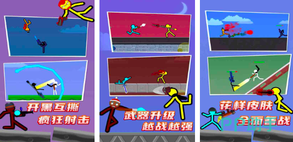 火柴人对决,同样是一款2d游戏,游戏当中不仅有枪刀武器装备,而且还可以使用荧光棒,让每一次的对决效果更加炫酷,在同一个设备上,可要求好友一起体验,而且装备升级越快,战斗能力越强,花样式的火柴人皮肤,可以为玩家解锁更多高强度技能,炫酷的打斗方式,冲击着玩家们的视觉神经。
