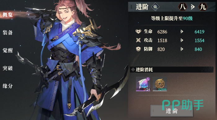 不同类型的武将进阶需要消耗的主材料是不一样的,可以刷对应攻击/防御/辅助进阶层数,或者从进阶福地里挂机领取,还有就是商店拿苍岩币(竞技场代币)兑换,还有进阶材料自选奖励,不过后者建议留着到换高阶的进阶材料。