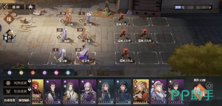 除了上述核心武将外,还可以根据需要补充一些增益、补刀以及承伤人选来完成阵容构建,比如可以选择具有治疗或辅助能力的女武将如蔡文姬或小乔来保证队伍的持续作战能力,或者加入像关银屏这样拥有群体控制技能的女将来增强整体的控制效果,还有张春华是一位极具特色的武将,她的绝技伤害倍率非常高,能够对敌方及其相邻的敌人进行 3 段强力攻击,并且还会附加2层流血效果。