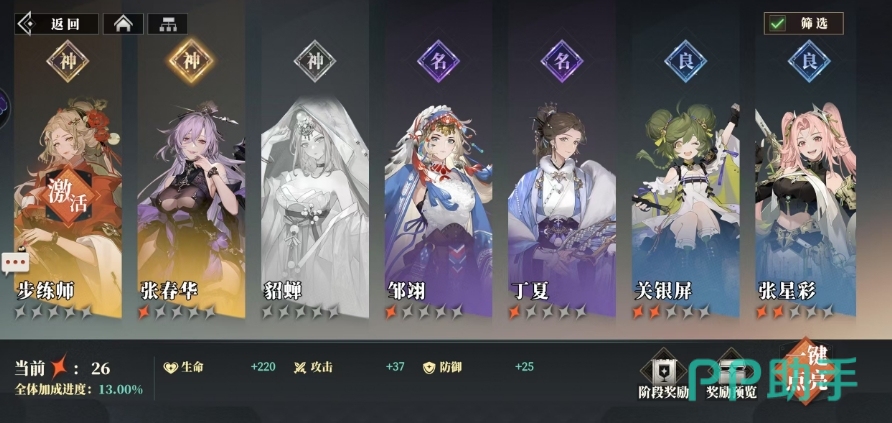 首先可以考虑以护盾增伤为核心策略来选择武将,例如张星彩获取貂蝉就是不错的选择,张星彩作为防御型武将,其价值主要体现在提供护盾上,她不仅能为自己生成护盾,还能为所有队友提供护盾以及法术伤害减免的效果,此外当队友的护盾消失时,她还能给队友带来额外的行动条加成,并且在战斗开始时通过突破技直接赋予一层护盾,而貂蝉则可以进一步强化团队的生存能力和控制能力。