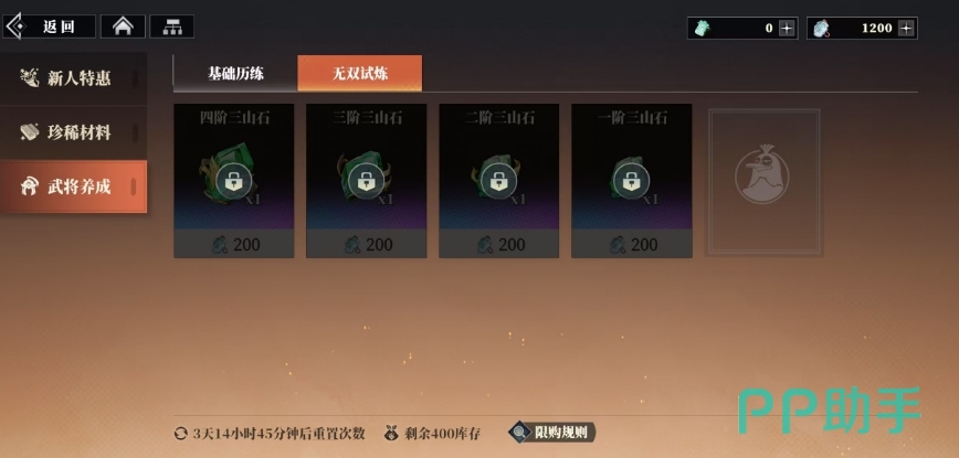 此外,无双1阶2阶装备自选也是非常有价值的,这些装备可以大幅提升武将的战斗力,除了三山钱,其他珍稀材料都可以根据实际情况进行兑换,在武将养成商店中,不同阶段的武将进阶材料是重点关注对象,不同阶的兑换价格是一致的,因此建议尽量兑换高阶的进阶材料,在游戏初期玩家的资源相对有限,此时应该围绕几个核心武将进行培养。