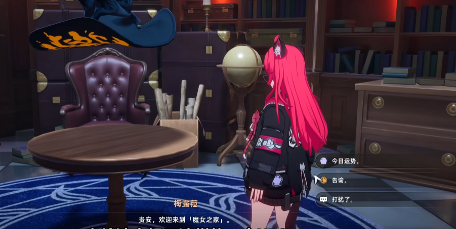 在地图上探索时,会遇到一些随机的怪物,也会看到一些宝箱,将箱子旁边的怪物击败,就能拿到宝箱里的奖励,这也是游戏中唯一能获取宝箱的途径;有些怪物很明显是能看到可以战斗的,但是有些怪物不会有提示,可能是一片红色的场景,需要进入场景之后自行触发。地图上还有种红色的乌鸦,跟这个红色的乌鸦互动一下,就能获取“谕石”这种资源,把这个谕石交给帽子NPC,在互动中选择“告谕”,然后将物品提交,就能领取到一些奖励,在这个NPC这里还能选择看今日运势,每天可以算命一次,可以得到一些类似buff的加成。
