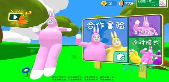 在开局后将会看到两只非常可爱的兔子人,玩家和自己的好友共同体验时,各自控制一只小兔子,通过翻转以及跳跃等多种方式,躲避沿途的障碍物,还要想方设法收集大量的胡萝卜。此游戏凭借着卡通的画风吸引了更多的玩家,也支持了双人模式以及单人模式。操作方式极其简单,通过控制屏幕就能够操控其中的兔子人完成闯关。