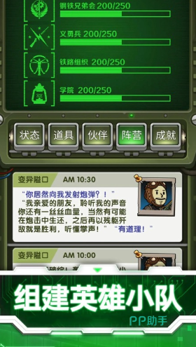 一款以文字叙述推动剧情发展的生存冒险游戏,引领玩家步入一个核辐射笼罩下的荒芜世界,要求玩家在此环境中努力存活。游戏中,玩家的每一个决定与选择都扮演着至关重要的角色,它们不仅左右着个人的命运轨迹,还深刻影响着故事的整体脉络。随着章节的推进,玩家将不断遇到各式各样的挑战与分岔路口,这些决定与角色的能力状况共同勾勒出游戏的多样结局与情节发展。